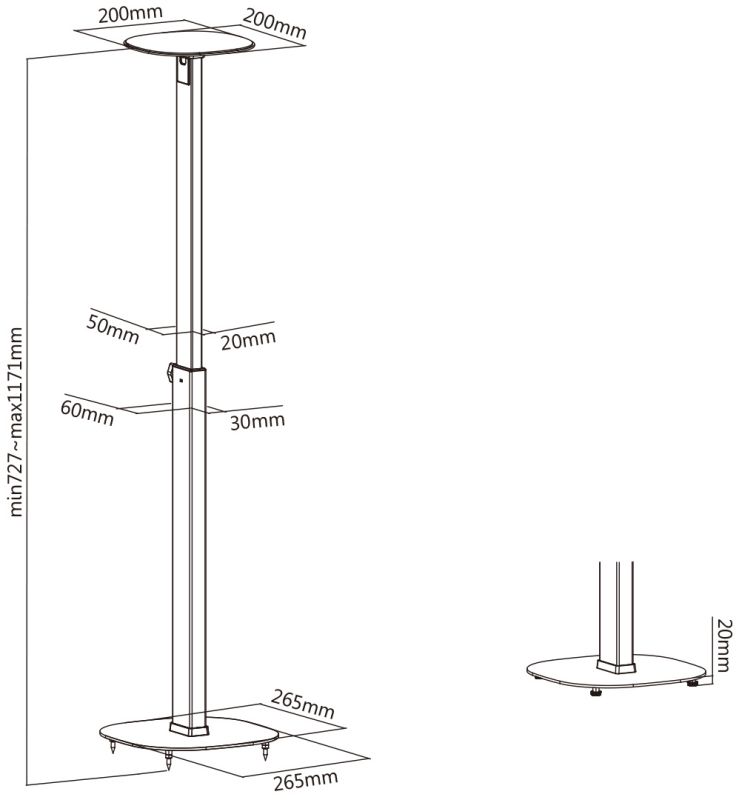 • Boxenstandfläche: 200x200mm (mit Mossgummibeschichtung)
