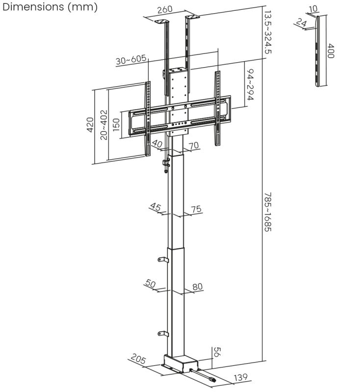 • Höhe: 785-1685mm