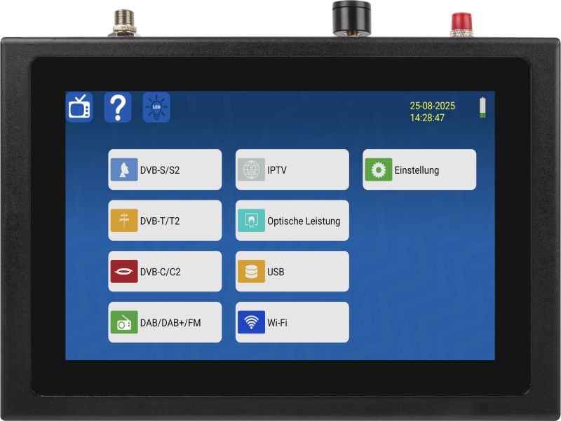 • Appareil de mesure pour DVB-S/S2, optique, DVB-C/C2, DVB-T/T2, IPTV, DAB+, FM, WLAN