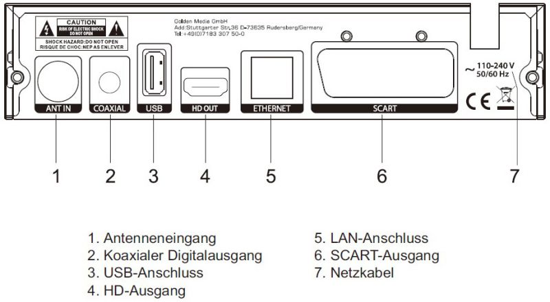 • IEC-Anschluss für Antenne